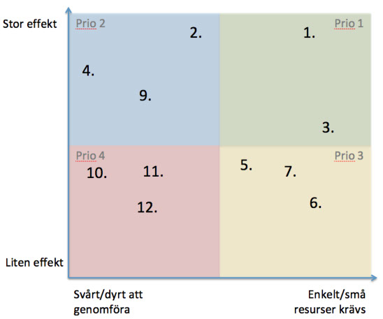 12. Effekten blir stor på lång sikt, resurskrävande genomgång av många system.
